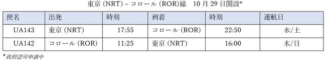 「この新路線は、日本とパラオのお客様により多くの旅の選択肢を提供し、見所溢れる目的地を訪れる機会を提供します。また、先日発表した他のアジア路線と合わせ、この地域および世界中のお客様に、心躍る素晴らしい目的地を新たにお届けいたします。」と、ユナイテッド航空の日本・ミクロネシア・フィリピン・台湾 営業担当支社長の桐山謙一は述べています。