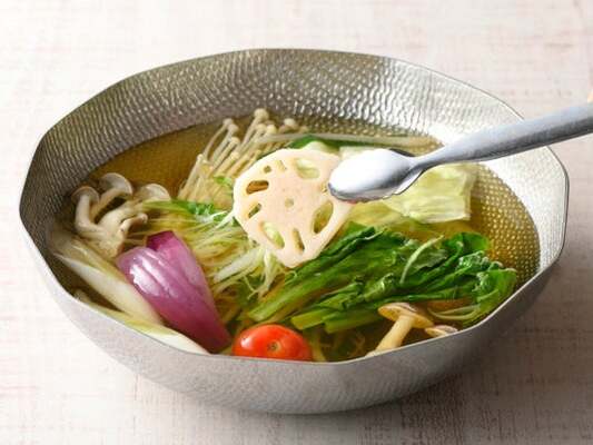 そして、沢山のお野菜が堪能できる「すうぷ」の『お野菜しゃぶしゃぶ』は、一人にひとつのMY(マイ)鍋スタイルで自分好みにお楽しみいただけます。味を変えて2度楽しめる「だし」、バラエティー豊かなたれやトッピングで、らーめん、リゾットなどの〆まで飽きることなくお召し上がりいただけます。